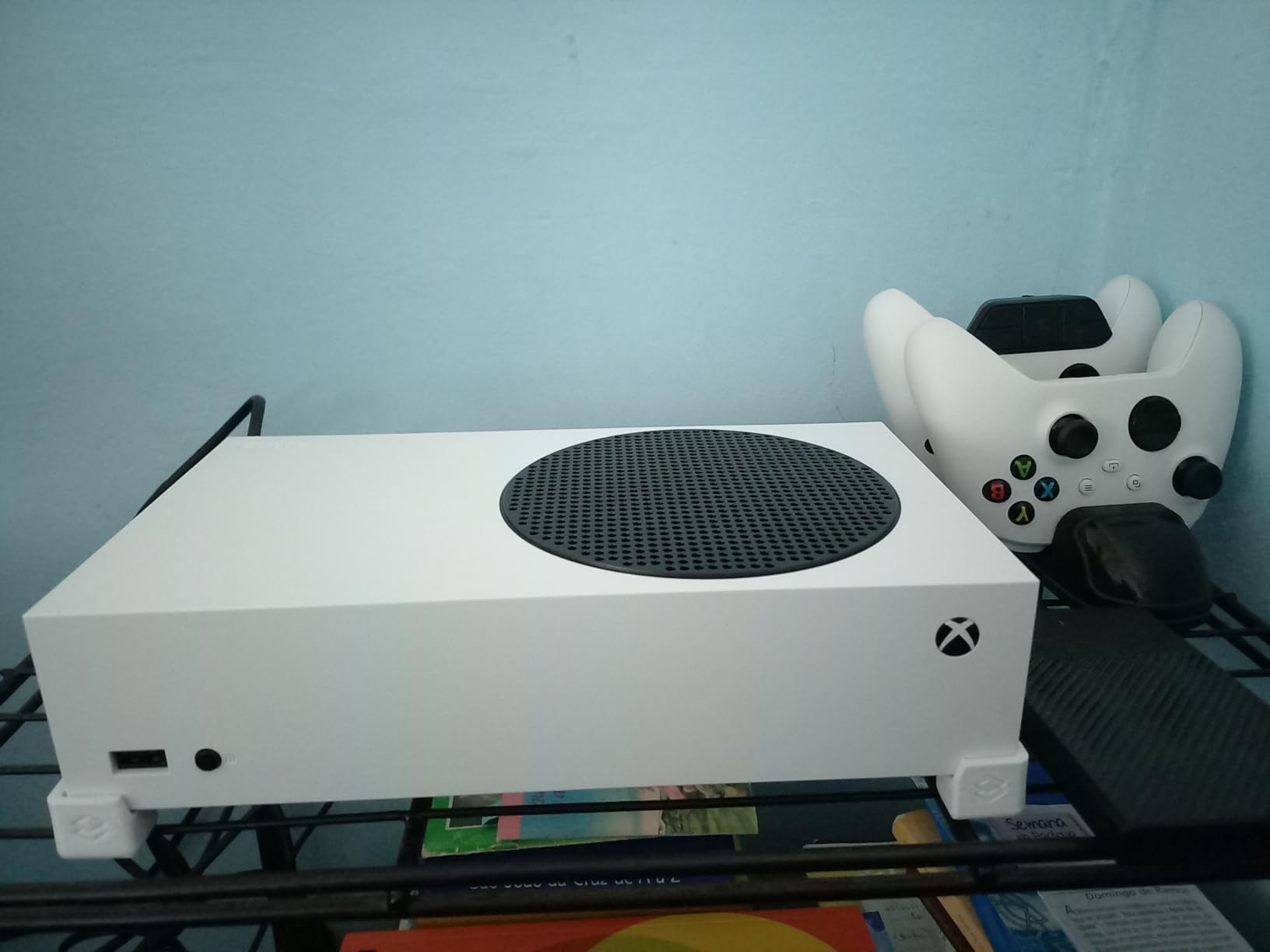 O Series S é, sem dúvida, um dos consoles mais elegantes e compactos já fabricados. O cubo branco com a grade preta circular de ventilação na lateral tem apenas 1,93 kg e cabe em qualquer rack de TV ou bancada. Cinco anos após o lançamento, o design ainda parece moderno — algo raro em eletrônicos.