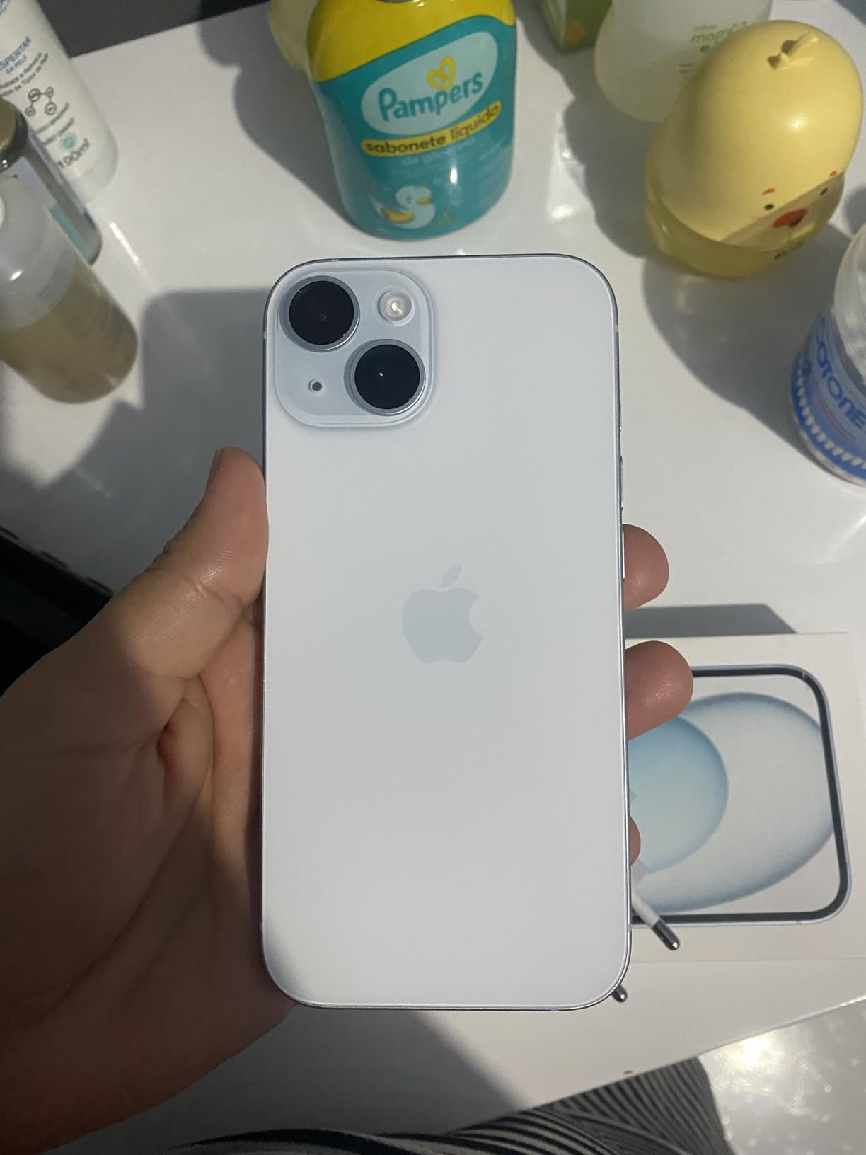 A certificação IP68 garante resistência à água e poeira — o iPhone 15 suporta submersão em até 6 metros por 30 minutos. Para uso cotidiano, isso significa tranquilidade para dias de chuva, piscina e acidentes domésticos.